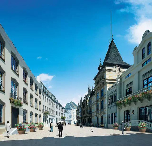 借鑒盧森堡石墻和自然懸崖圍繞的地貌.征,重現有著高低相間地形和錯落有致的街巷.將2~3層建筑布局在基地的低洼部分,4~5層的建筑布置在基地的高地部分,形成"豐富的街路空間",再現一個童話般的小鎮.