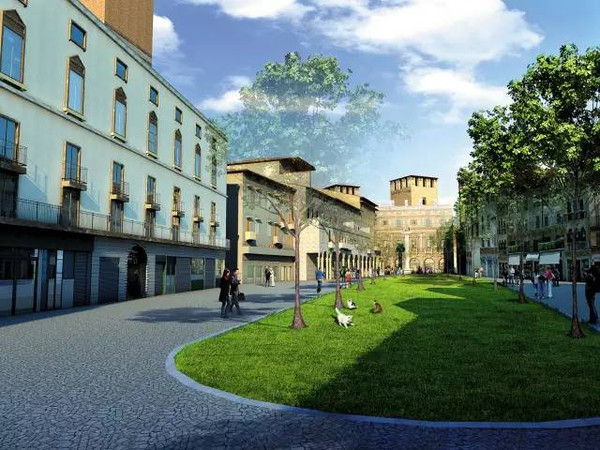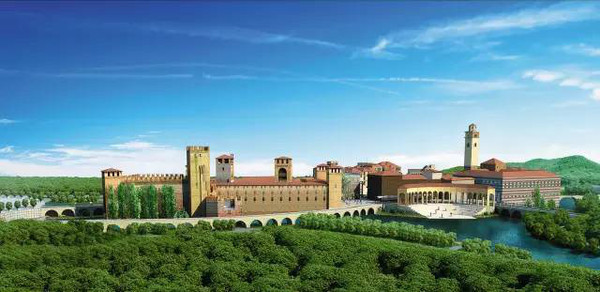 以維羅納中世紀的古城為原型,將景觀水路還原到街區內,結合.樹幟的古塔、壯美的廣場、曲徑通幽的石街,打造尺度宜人的街巷風情,形成了富于變化的組團.