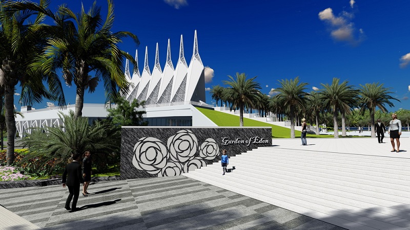 伊甸園婚慶主題廣場位于晉非獨立開發區最北端,總用地面積24800㎡,北臨柏杜彤布路,寬度6.0米,東臨合作區內現有道路,寬度14米,西、南臨規劃道路,寬度8米。