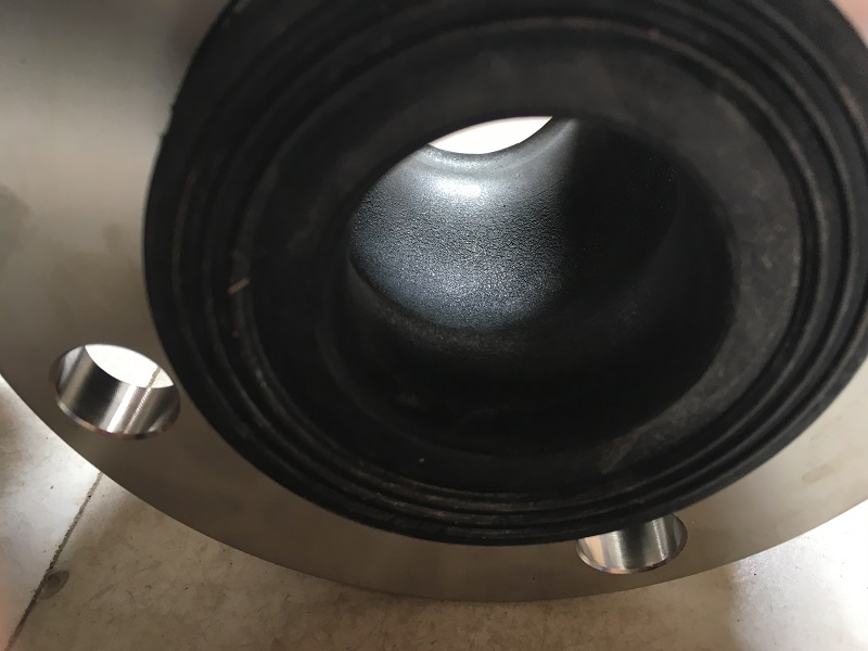 橡膠接頭內孔模具采用耐老化橡膠制成,一般使用壽命100次左右,DN300以上的使用壽命只有50次左右,DN500以上只有20次左右,這種橡膠氣膽模具都有壽命,如小口徑橡膠氣膽可以使用100次左右,當使用到80次的時候橡膠氣膽表面就會出現龜裂現象,橡膠氣膽龜裂紋路會印到橡膠接頭內徑,這種現象都是橡膠在硫化過程中產生的氣膽表面烙印,后面再生產的20個橡膠接頭內徑就會出現這種紋路,這種紋路并不會脫落,也不會造成質量問題,更不會影響到使用壽命。