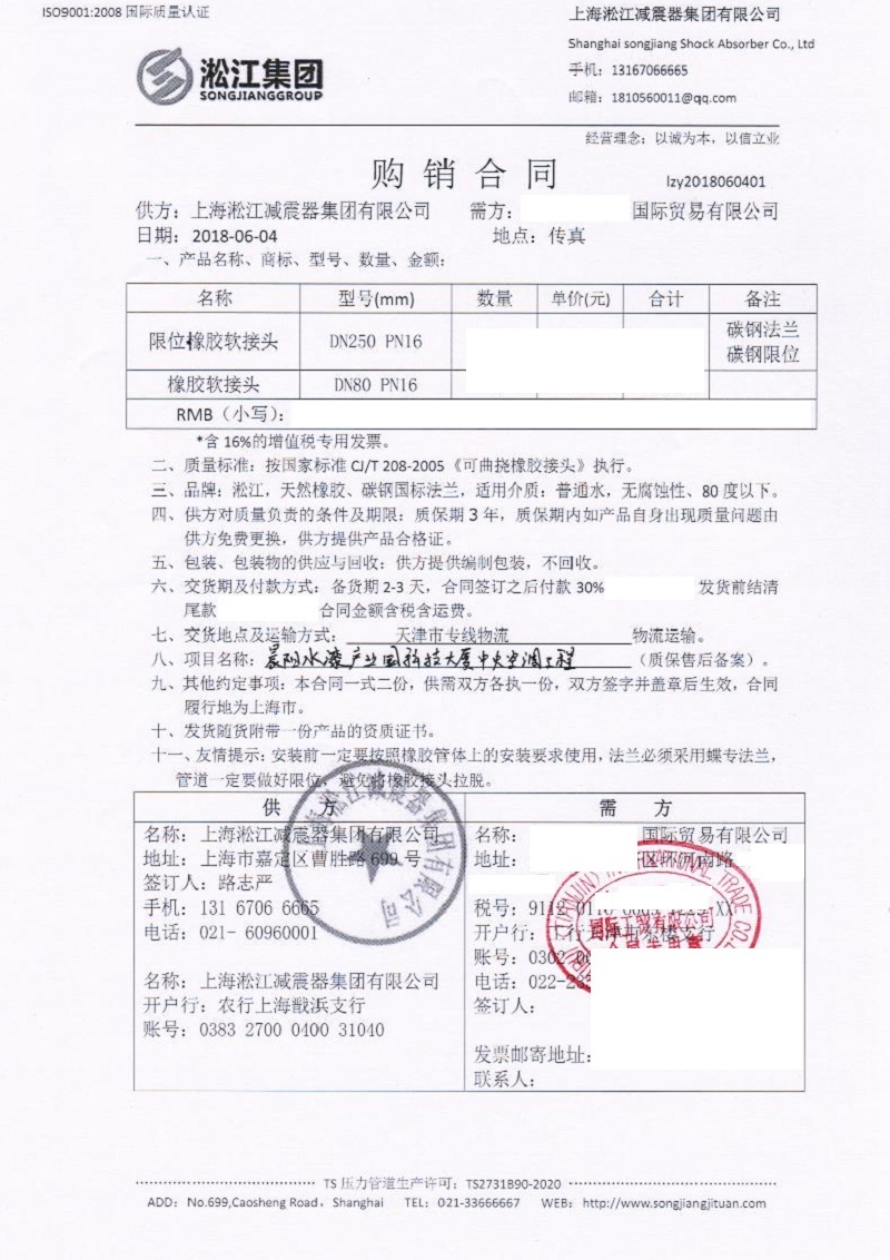 【河北晨陽水漆產業園科技大廈】橡膠接頭合同介紹: