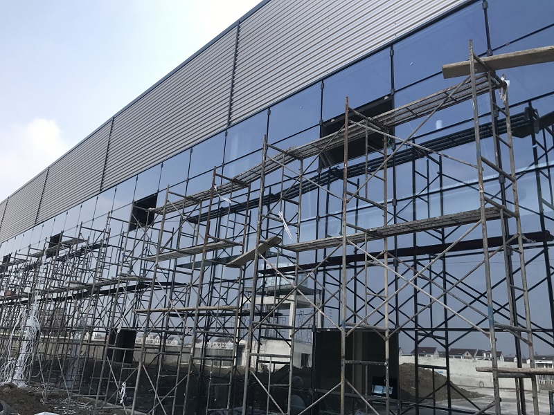 玻璃幕墻完工,工廠大門也安裝完畢。