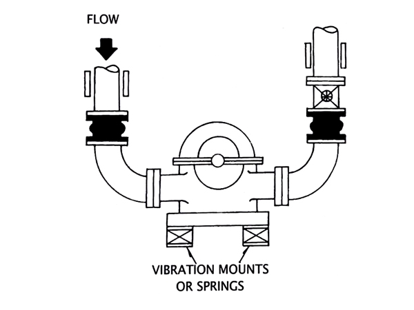 典型的泵安裝,帶有連桿伸縮接頭,采用振動(dòng)支座。