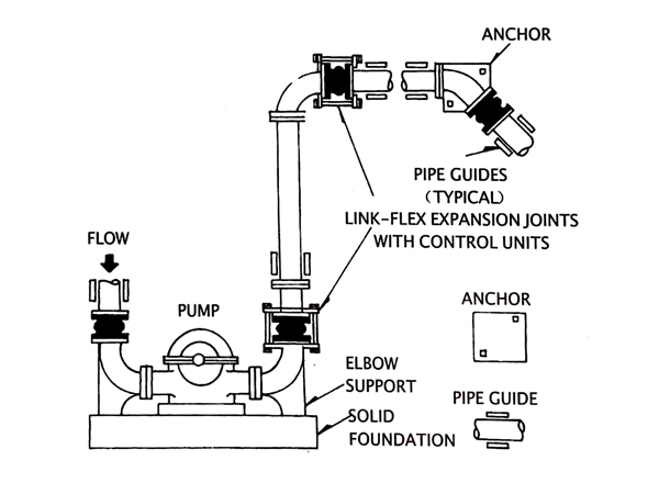 Typical pump lnstallation with Link-flex expansion joints utilizing vibration mounts.