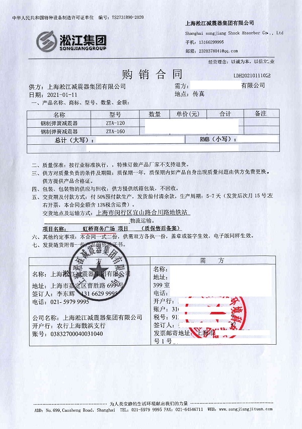 【上海虹橋國際商務廣場】鋼制彈簧減震器合同