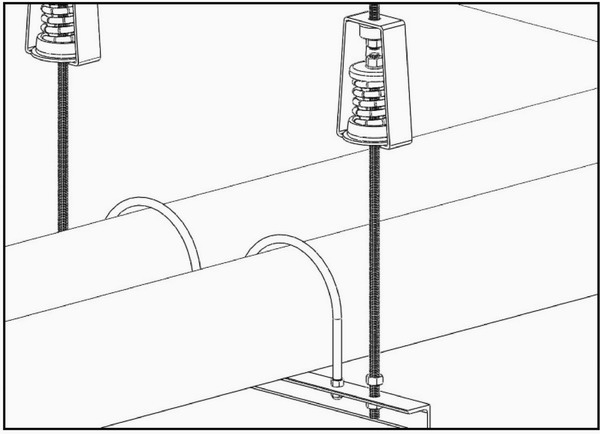 圖3)將淞江集團吊式彈簧減震器與設備連接的絲牙條裝上。