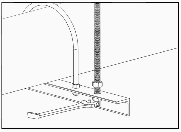 圖5)使用開口扳手調整下部螺帽來調整設備水平及彈簧壓縮量。